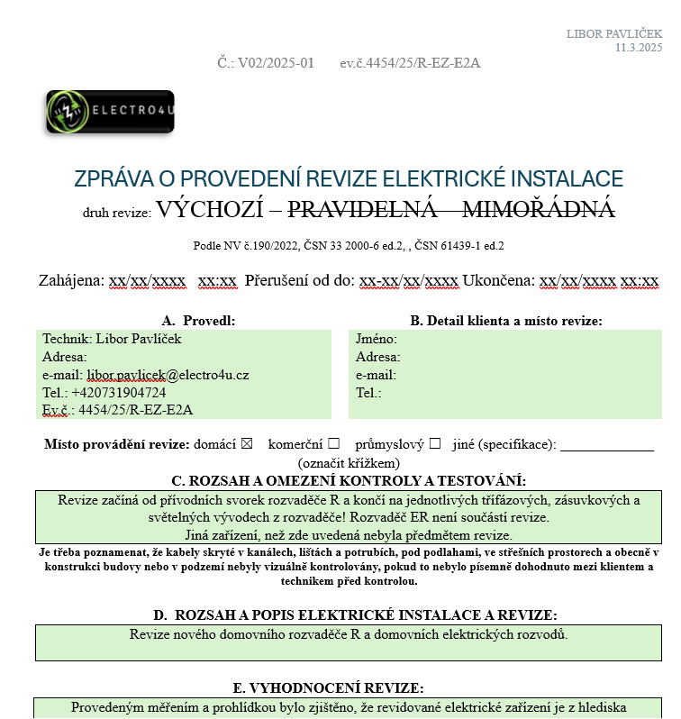Elektroinstalace, revize, školení, opravy, havarijní servis