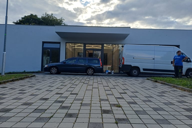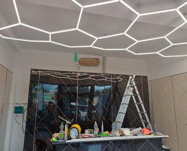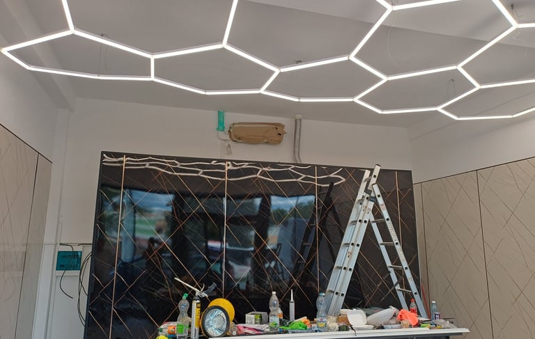 Náš zákazník si přál osvětlení ve stylu včelího plástu, tak 480W LED to krásně vyřešilo. I z ulice to vypadá krásně ... .